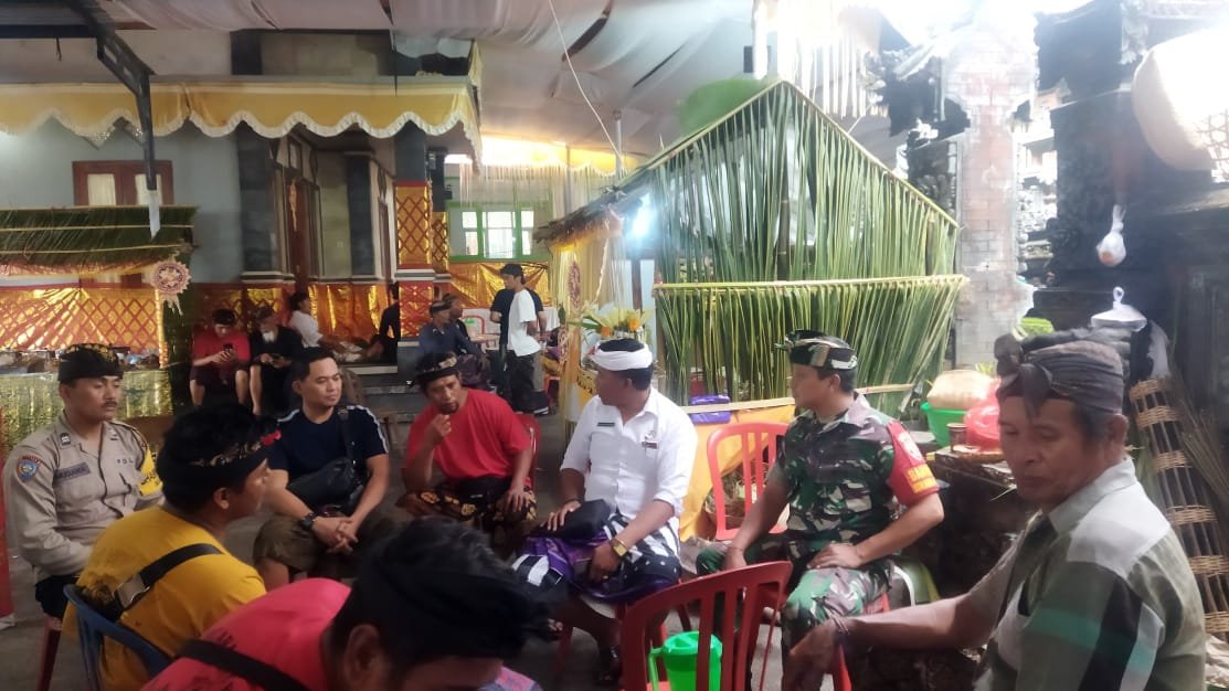 Kedatangan Babinsa Subaya Sertu Kadek Gesta disambut hangat oleh Sekdes Subaya Nyoman Budiarata beserta keluarga yang sedang melaksanakan proses Upcara tiga Bulanan.