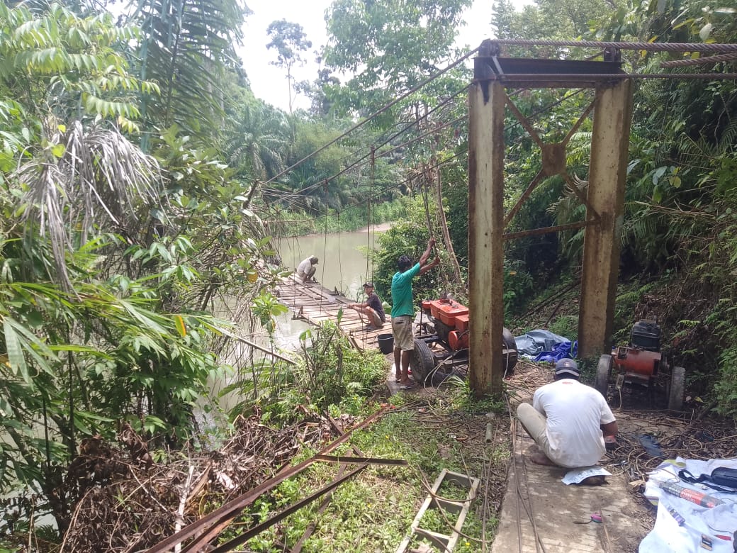 Jembatan gantung yang ada sebelumnya mengalami kerusakan parah yang disebabkan oleh kerusakan pada lantai jembatan yang sudah mulai lapuk. Akibat kerusakan ini, mobilitas masyarakat serta distribusi hasil pertanian menjadi terhambat.