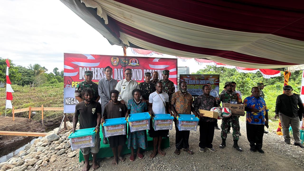 Selain fokus pada pembangunan fisik, dalam rangkaian kegiatan ini, Kodim 1705/Nabire juga melaksanakan aksi sosial berupa pembagian sembako dan peralatan olahraga kepada masyarakat sebagai bentuk kepedulian terhadap kebutuhan warga.