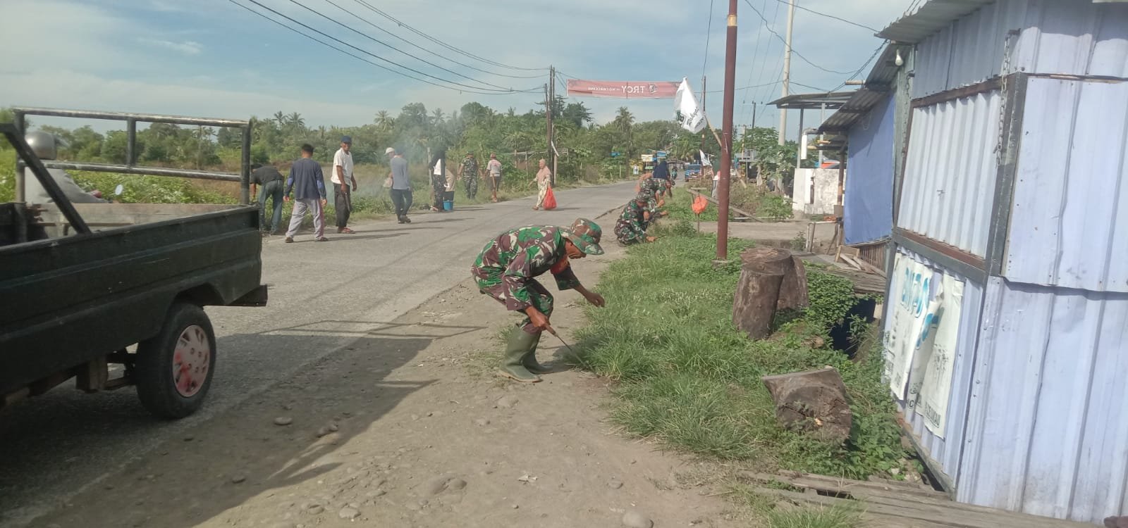 TAKALAR – Dalam rangka Jum’at bersih, Personel Koramil 1426-05/Marbo Kodim 1426/Takalar mengajak pemerintah setempat dan warga melaksanakan kerja bakti pembersihan pinggir kiri kanan jalan di Desa Banggae Kecamatan Mangarabombang Kabupaten Takalar. Jum’at, 09/05/2025.