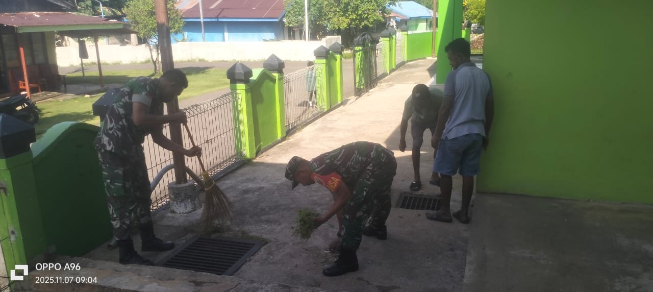 Jumat Bersih Koramil 1512-03/Gebe Kodim 1512/Weda Jadikan Tempat Ibadah Lebih Nyaman