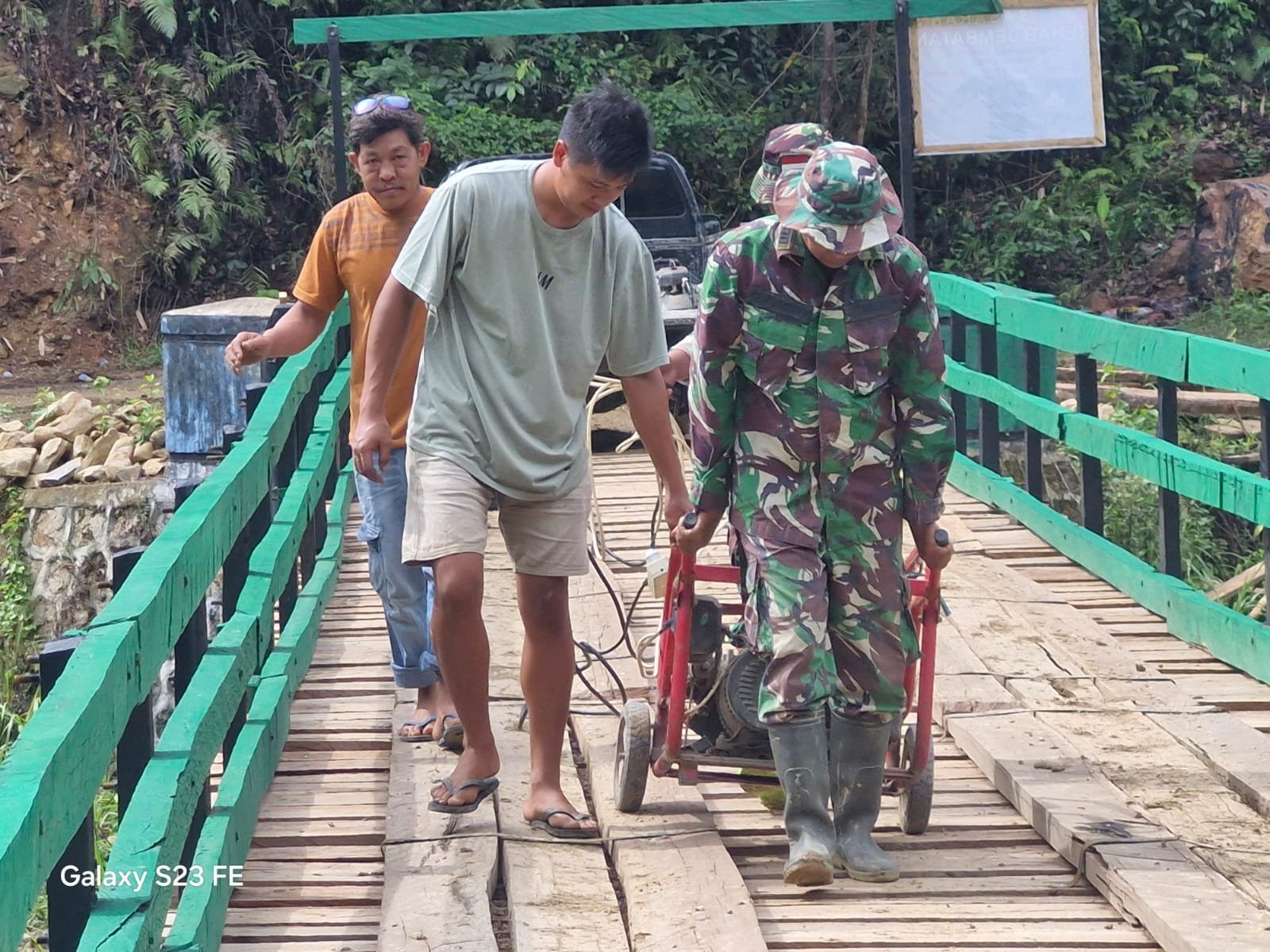 Kolaka Timur, 29 Oktober 2025 — Wujud kepemimpinan yang inspiratif kembali ditunjukkan oleh Danpos Sasaran Jembatan TMMD ke-126 Kodim 1412/Kolaka, Kapten Inf Sudarto. Dengan penuh semangat, ia ikut turun langsung membantu anggota dan masyarakat menarik mesin las menuju lokasi kerja di Desa Tanggauna, Kecamatan Ueesi, Kabupaten Kolaka Timur.