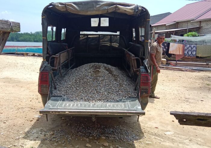 Mesin las yang ditarik bersama itu digunakan untuk menyelesaikan pengelasan tiang pembatas jembatan — salah satu bagian penting dalam tahap finishing. Proses tersebut memerlukan tenaga ekstra karena kondisi medan yang menanjak dan berlumpur.