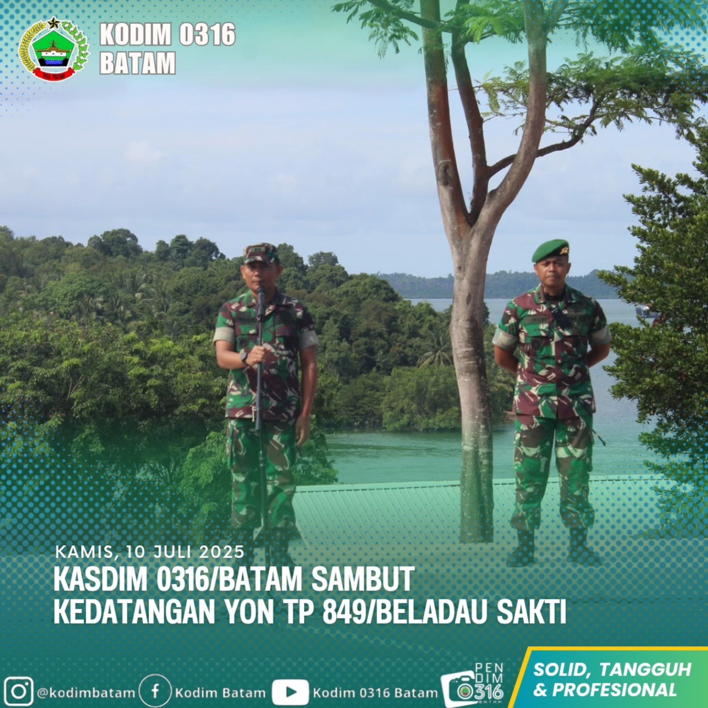 “Selamat datang di wilayah Kodim 0316/Batam. Kehadiran rekan-rekan dari Yon TP/849 tentu akan memperkuat soliditas serta sinergi dalam menjaga keamanan dan ketertiban di wilayah ini,” ujar Letkol Inf Sunardi.