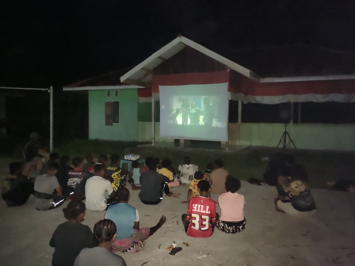 Manokwari Utara — Suasana malam di Tanah Rubuh, Distrik Manokwari Utara, mengalami perubahan yang menyenangkan. Satgas TMMD ke-128 Kodim 1801/Manokwari menggelar acara nonton bareng (nobar) film perjuangan untuk warga di Balai Kampung pada Selasa malam (28/04/2026).