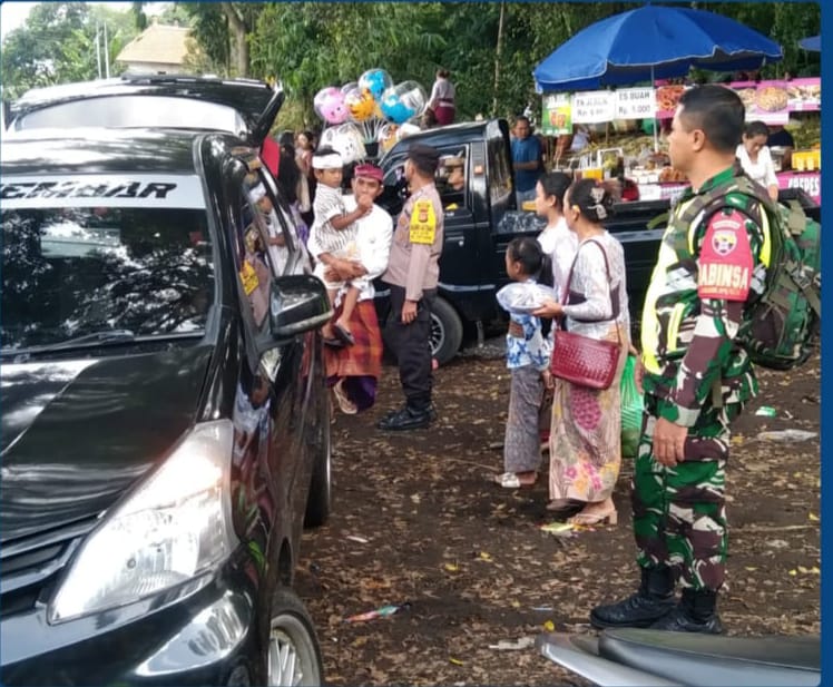 Keamanan Terjamin, Babinsa dan Bhabinkamtibmas Jaga Piodalan Purnama Sasih di Pura Dukuh
