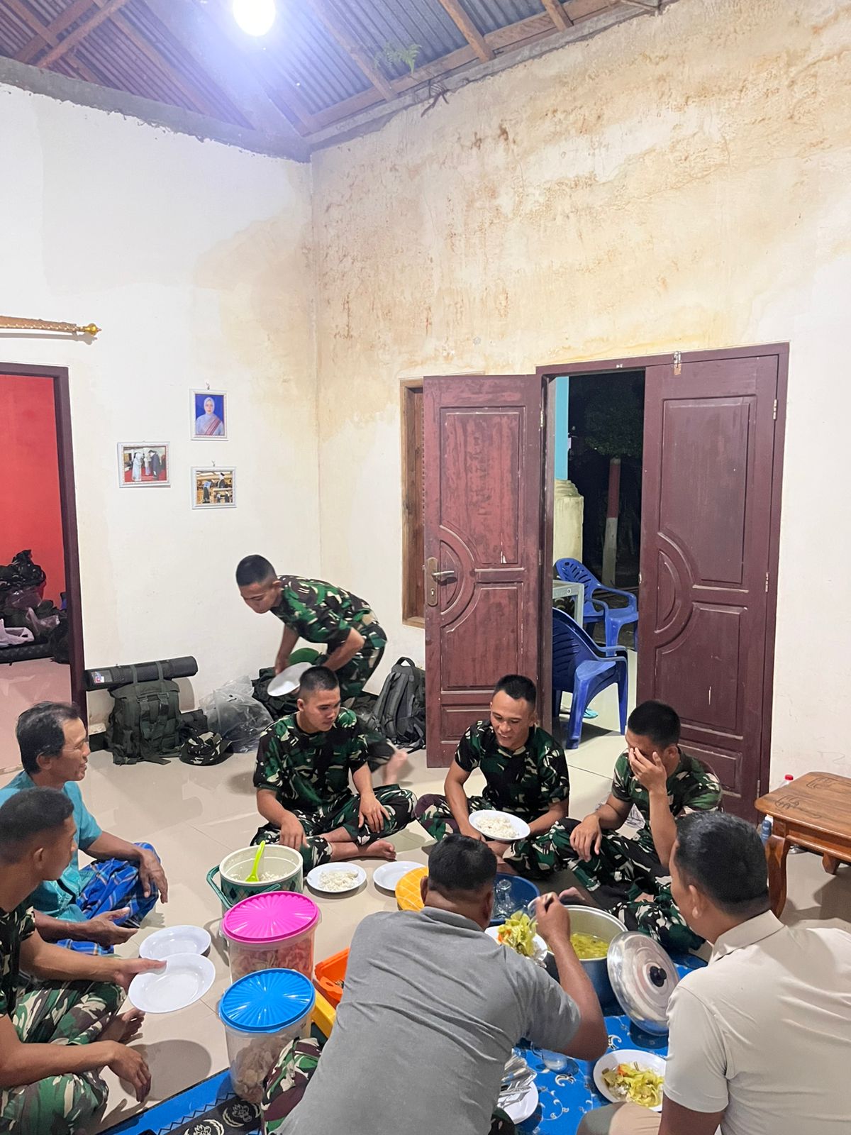 Kegiatan santap bersama ini dilaksanakan sebagai langkah untuk memperkuat relasi kekeluargaan antara prajurit Satgas dan masyarakat lokal. suasana yang hangat dan penuh keakraban tampak saat anggota Satgas serta keluarga Pak Sikun duduk bersama menikmati hidangan yang sederhana namun penuh makna.