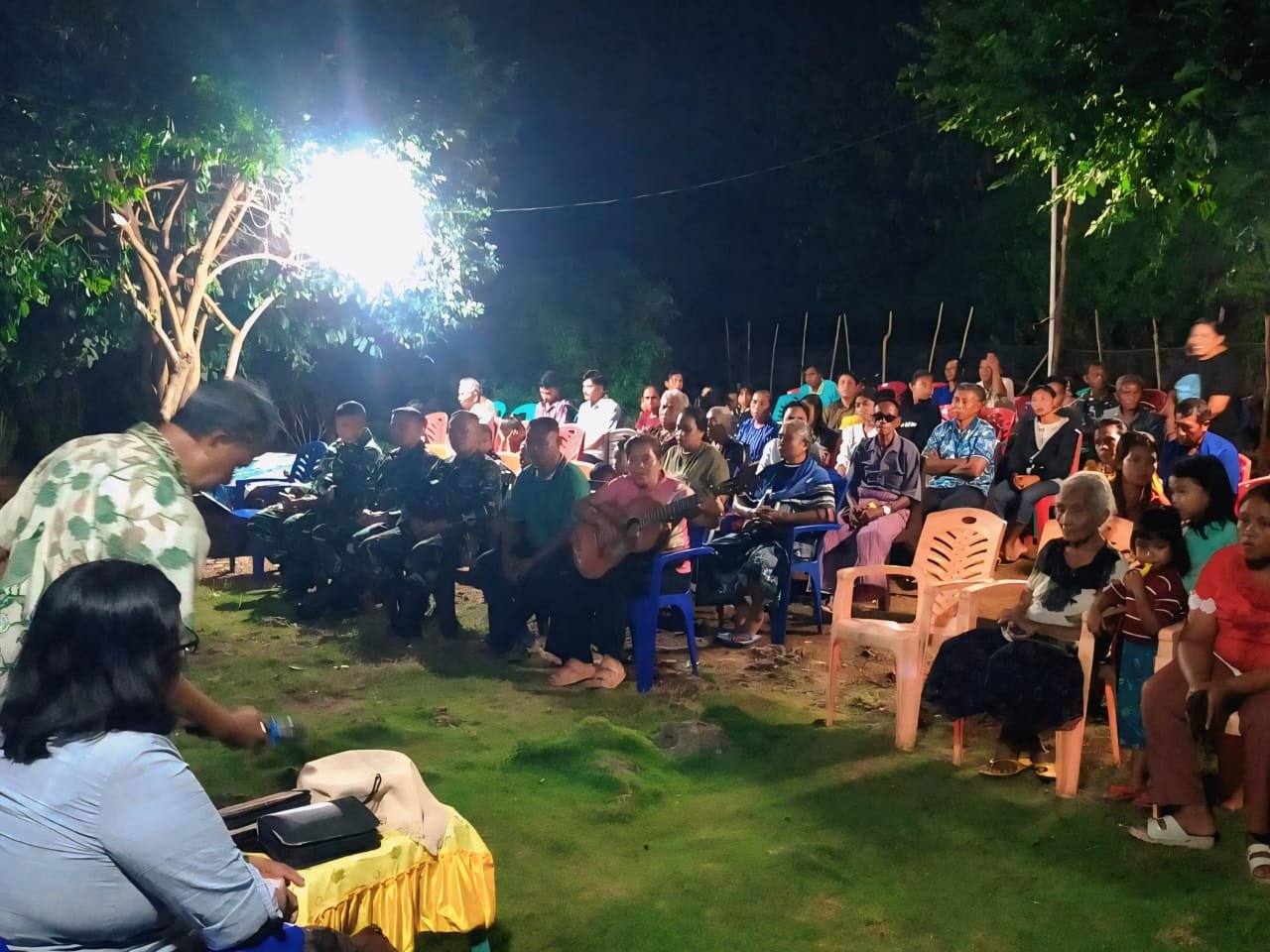 NTT-SEMAU – Suasana penuh kehangatan dan kebersamaan tercipta dalam acara syukuran dan ulang tahun keluarga Bapak Yapi Pinalela di RT 08/RW 04, Desa Uitao, Kecamatan Semau, Kabupaten Kupang. Dalam momen tersebut, Pelda Alfret Dimoe bersama enam anggota Satgas TNI Manunggal Membangun Desa (TMMD) ke-124 Kodim 1604/Kupang turut hadir memenuhi undangan, mempererat jalinan silaturahmi dengan masyarakat setempat. Minggu malam (11/05/2025).