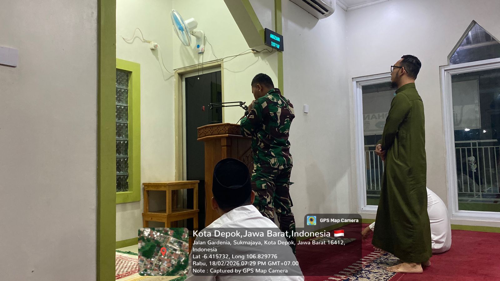 Depok – Hubungan harmonis antara Satgas TMMD Ke-127 TA 2026 dan masyarakat setempat semakin erat tidak hanya melalui proyek fisik, namun juga dalam kegiatan ibadah. Pada malam Kamis, 19 Februari 2026, anggota Kodim 0508/Depok melaksanakan sholat Tarawih bersama warga di Mushalla Ar Rahman, yang terletak di Jl. GDC Sektor Gardenia, Kelurahan Tirtajaya, Kecamatan Sukmajaya.
