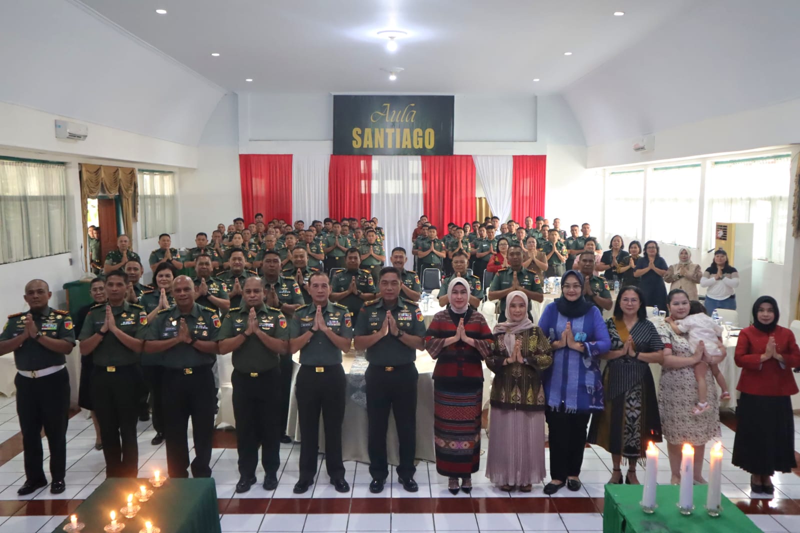 Manado – Dalam semangat kebersamaan dan perayaan Natal, Dandim 1309/Manado Kolonel Arh Yosip Brozti Dadi, S.E., M.Tr (Han) bersama Ketua Persit Kartika Chandra Kirana Cabang XVII Dim 1309, Ny. Hijrah Brozti Dadi, turut serta dalam acara Natal yang berlangsung di Aula Makorem 131/Santiago pada hari Kamis, 22 Januari 2026. Acara ini dihadiri oleh Danrem 131/Santiago Brigjen TNI Martin Susilo M. Turnip, S.H., M.H., beserta Ketua Persit Kartika Chandra Kirana Koorcab Rem 131 PD XIII/Merdeka, Ny. Ella Martin, serta sejumlah prajurit, ASN TNI, dan keluarga besar Korem 131/Santiago.