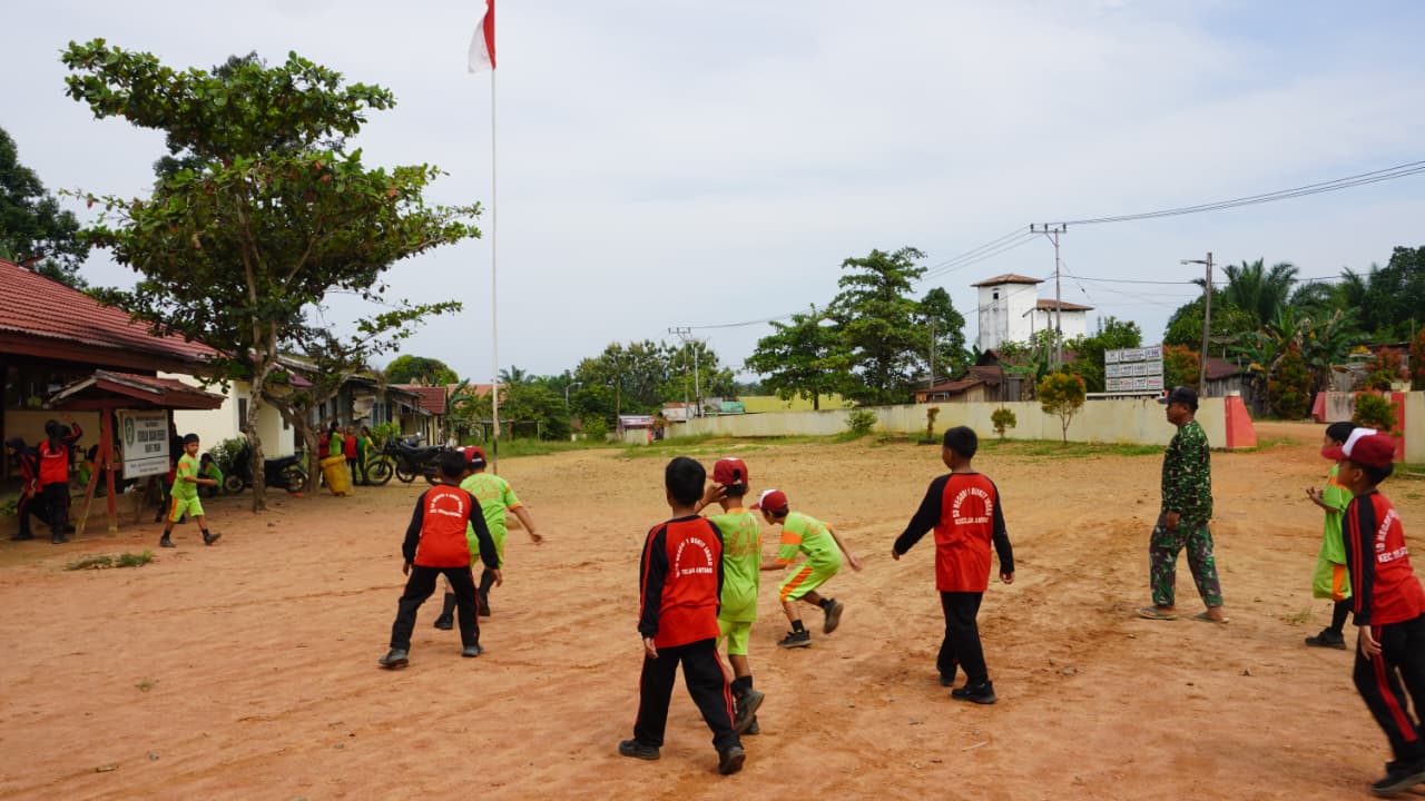 Kotawaringin Timur – Di lapangan SDN 1 Bukit Indah, Kecamatan Telaga Antang, suasana penuh keceriaan terlihat ketika anggota Satgas TNI Manunggal Membangun Desa (TMMD) Reguler ke-127 Kodim 1015/Sampit menghabiskan waktu istirahat mereka dengan bermain bola plastik bersama anak-anak desa pada Jumat (27/02/2026). Kegiatan menyenangkan ini diadakan setelah para prajurit menyelesaikan berbagai pekerjaan sasaran fisik yang menjadi tanggung jawab mereka dalam program TMMD.