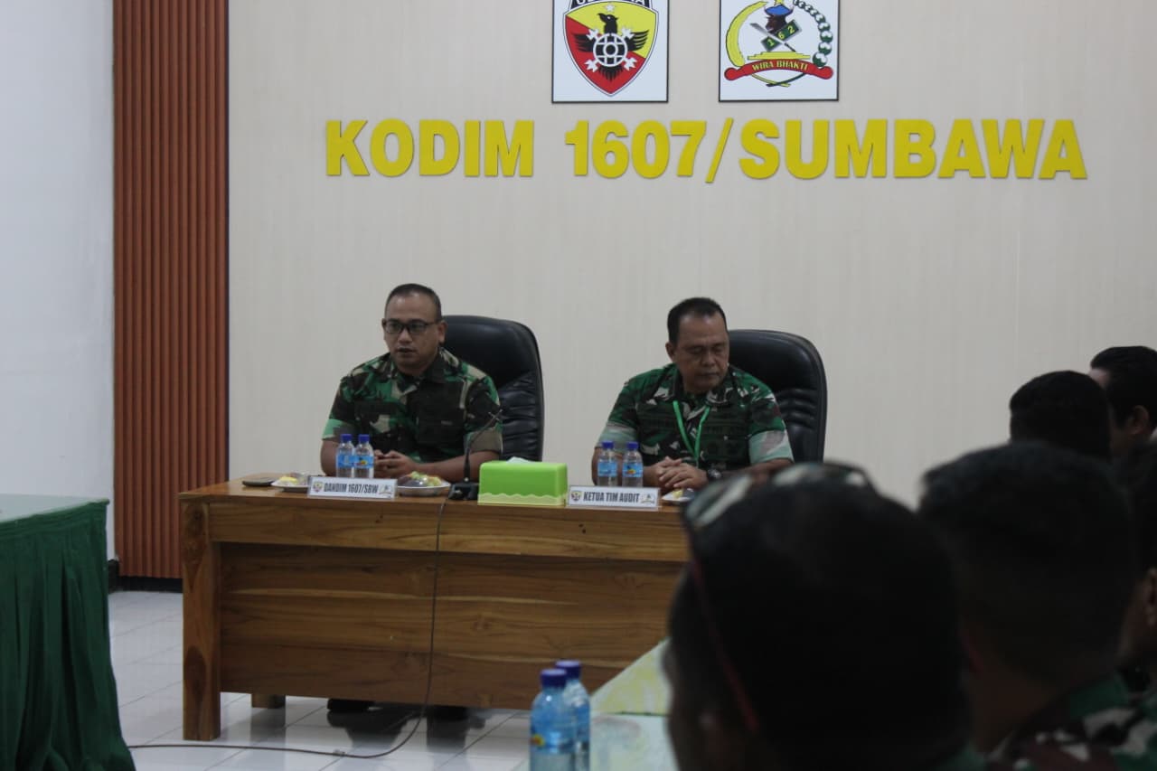 Tim audit tersebut tiba sekitar pukul 09.13 WITA, bersama beberapa pejabat pengawas internal Itdam IX/Udayana seperti Letkol Inf. Supriadi, Letkol Inf. Kaharudin, dan Letkol Inf. Arianto. Dandim bersama para Perwira Staf Kodim 1607/Sumbawa memberikan sambutan hangat dengan nuansa kekeluargaan saat menyambut kedatangan tim.