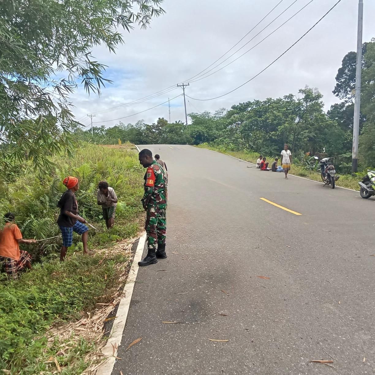 Boven Digoel – Pada Selasa, 16 Desember 2025, Pratu Narius, Babinsa dari Koramil 1711-01/WRK, bersama timnya melaksanakan kegiatan Karya Bakti (Karbak) di RT 02 Kampung Ninati, Distrik Ninati, Kabupaten Boven Digoel. Kegiatan ini bertujuan membersihkan jalan raya yang tertutupi rumput liar, menciptakan lingkungan yang bersih dan nyaman bagi masyarakat setempat.