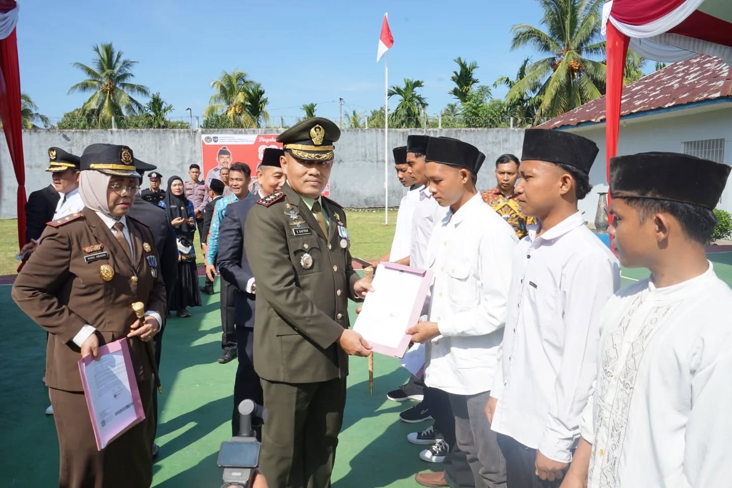 Manna – Dandim 0408/BS Letnan Kolonel Czi Bambang Santoso,S.H.,M.SDS menghadiri kegiatan Penyerahan Remisi Umum Tahun 2025 Kepada Narapidana Lapas Kelas IIB Bengkulu Selatan, Kabupaten Bengkulu Selatan, Minggu (17/8/25).