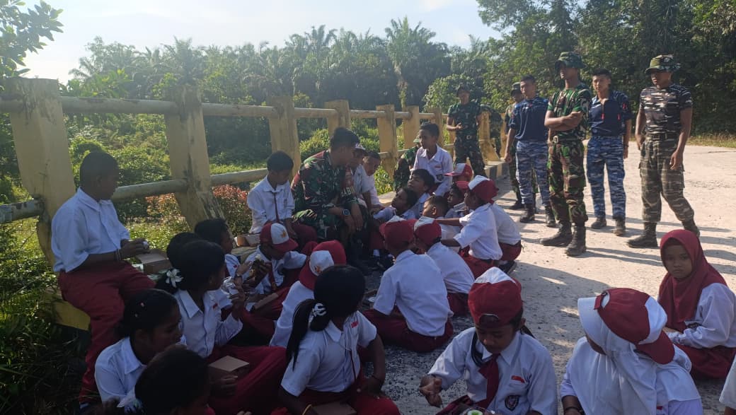Pangkalan Banteng – Kehadiran Satgas TMMD Ke-128 dari Kodim 1014/Pbn di Desa Sungai Hijau pada Rabu (29/04/2026) membawa suasana ceria bagi anak-anak di sekolah dasar. Para siswa tampak sangat antusias dan bersuka cita saat berinteraksi dengan para anggota Satgas.