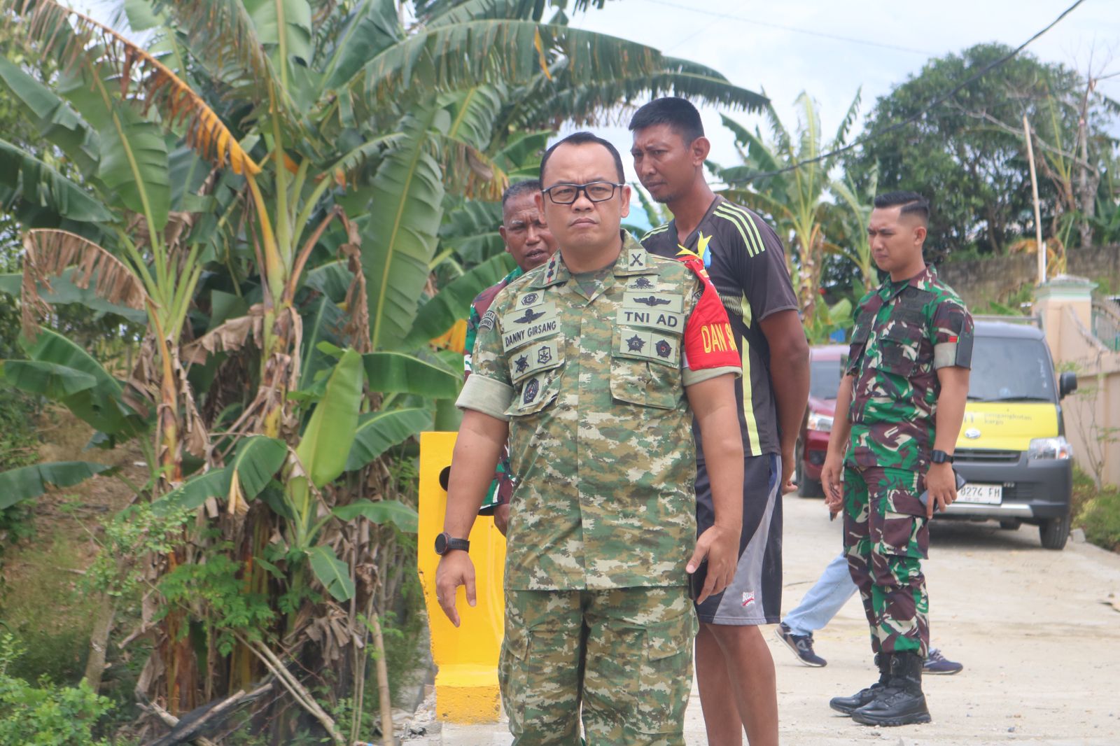Dengan mengenakan seragam loreng dan atribut khas Satgas, Dansatgas terlihat aktif berinteraksi dengan para anggota di lapangan sambil memantau perkembangan pekerjaan yang tengah dilaksanakan.
