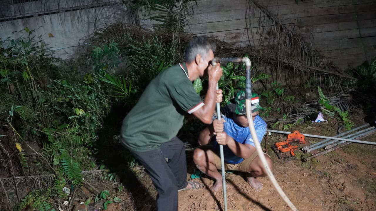 Pekerjaan pembangunan sumur bor ini dilakukan secara kolaboratif antara anggota Satgas TMMD dan masyarakat setempat dengan semangat gotong royong. Untuk mempercepat progresnya, tim juga melanjutkan proses pengeboran hingga larut malam.