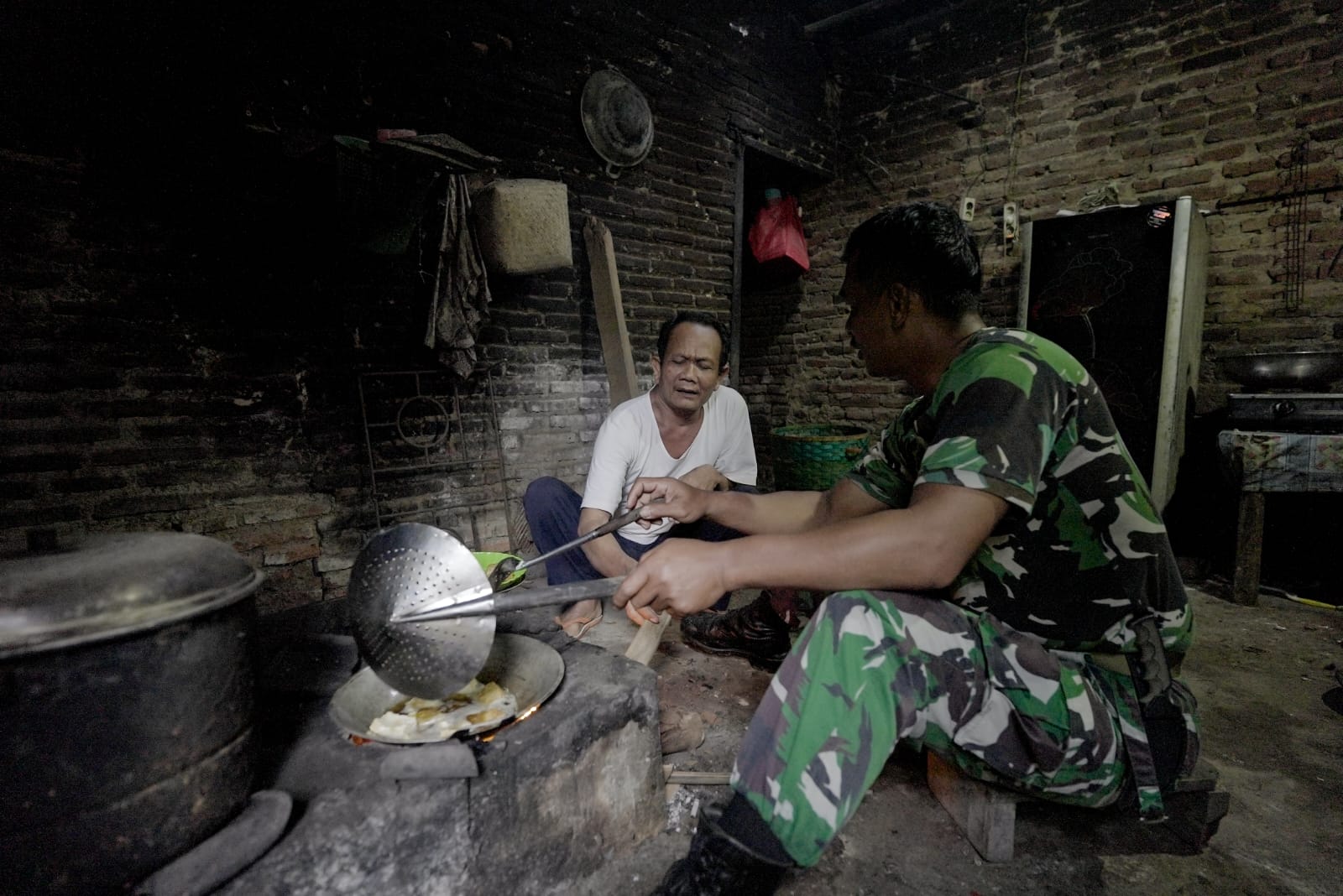 Hal serupa dirasakan langsung oleh Poniman, salah seorang warga Desa Kandangmas. Ia mengaku terkejut sekaligus terharu melihat tentara yang biasanya identik dengan barisan tempur, kini ikut berkeringat di dapur sederhana miliknya.