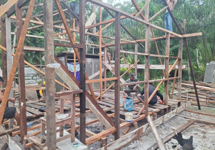 Barito Selatan – Untuk percepatan pengerjaan sasaran fisik TMMD Reguler ke-124 Kodim 1012/Buntok telah memasuki tahap pemasangan dinding luar rumah tidak layak huni (RTLH). Satgas TMMD bersama warga bahu-membahu bergotong royong menyelesaikan pemasangan dinding, Bertempat di Desa Talio, Kecamatan Karau Kuala, Kabupaten Barito Selatan, Pada hari Sabtu (24/05/2025)