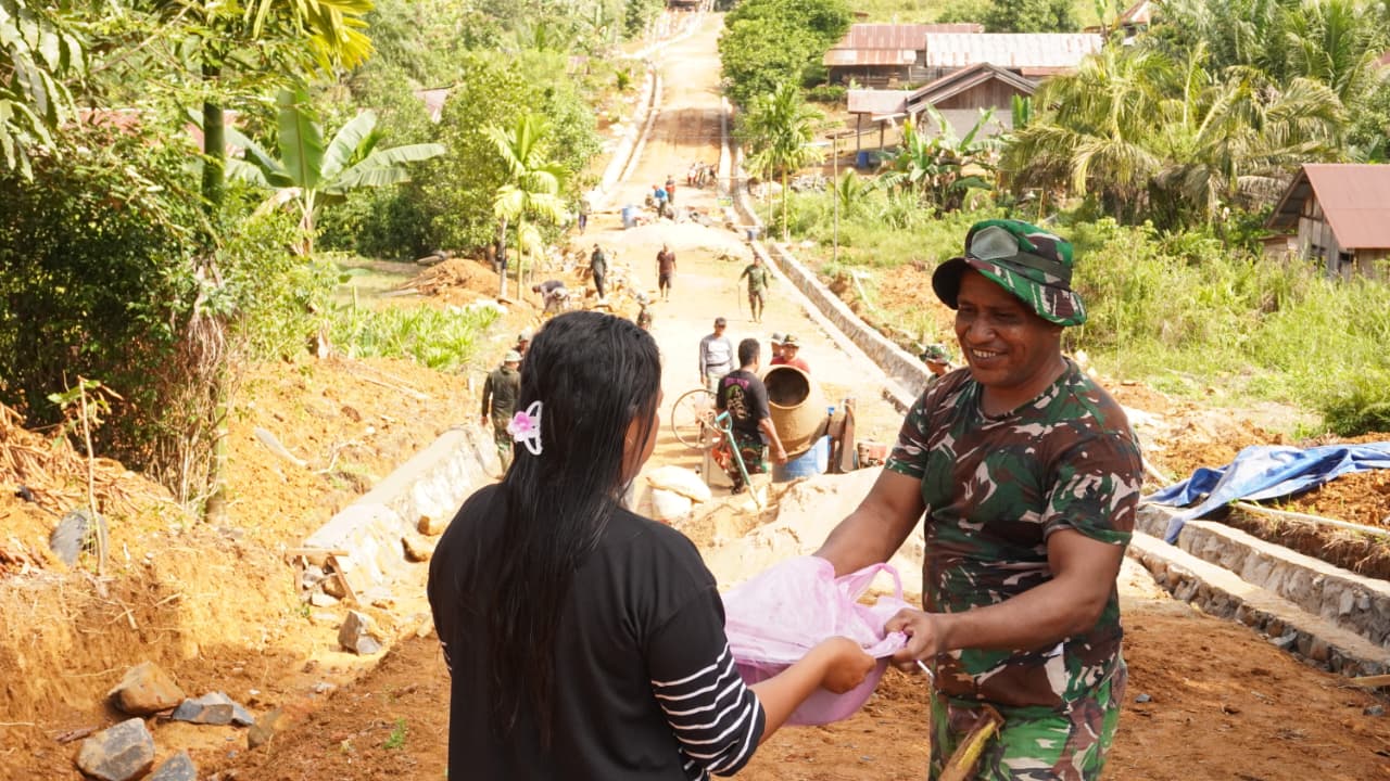 Kotawaringin Timur – Sinergi antara masyarakat dan Satgas TMMD Reguler ke-127 Kodim 1015/Sampit semakin terlihat dalam pelaksanaan program pembangunan di Desa Tribuana, Kecamatan Telaga Antang, Kabupaten Kotawaringin Timur. Pada hari Rabu (11/02/2026), warga setempat menunjukkan dukungan moril mereka dengan menyajikan kue buatan sendiri untuk anggota Satgas TMMD.