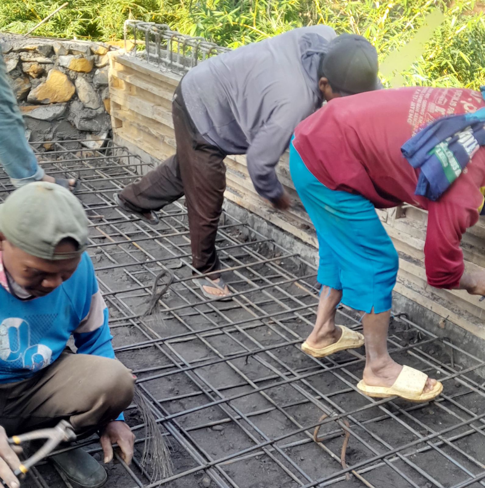 Pekerjaan konstruksi saat ini masih berlangsung, Minggu (03/08), dengan Satgas TMMD dan warga bahu-membahu merangkai pipa besi cor untuk bagian sayap jembatan. Kegiatan ini menjadi potret semangat gotong royong dan kemanunggalan TNI dengan rakyat dalam membangun infrastruktur desa.