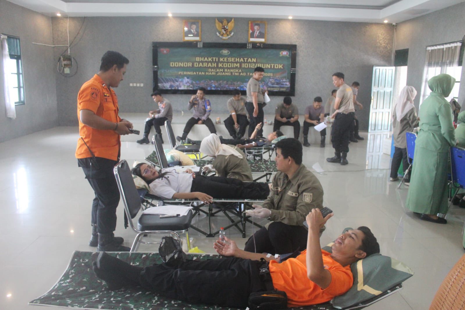 Pengorganisasian kegiatan ini berlangsung dengan dukungan penuh dari UTD RSUD Jaraga Sasameh, yang mengirimkan tim medis untuk melakukan pemeriksaan kesehatan terhadap para pendonor sebelum proses pengambilan darah dilakukan. Komandan Kodim 1012/Buntok, Letkol Inf Muhammad Edi, S.I.P, dalam sambutannya menegaskan bahwa kegiatan donor darah ini merupakan bentuk kepedulian sosial serta komitmen TNI AD dalam membantu masyarakat yang membutuhkan.