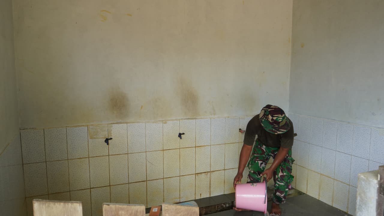 Dengan membawa berbagai peralatan kebersihan, para prajurit dan warga setempat bergotong royong membersihkan area lantai, halaman, serta bagian dalam masjid guna memastikan tempat ibadah tersebut siap digunakan untuk kegiatan sholat berjamaah. Semangat kerja sama ini sangat terasa sepanjang berlangsungnya kegiatan.