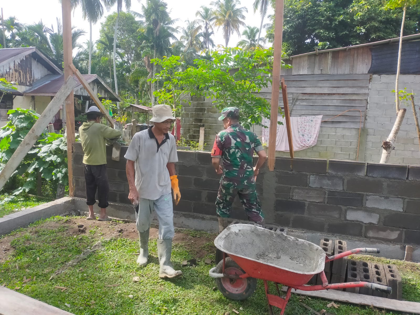 Pemilik rumah Bapak Muklis mengucapkan Terima kasih dan apresiasi atas bantuan tenaga dari Babinsa, karena dengan kehadiran Babinsa pekerjaan pemasangan batako rumah miliknya menjadi lebih cepat selesai, ujarnya.