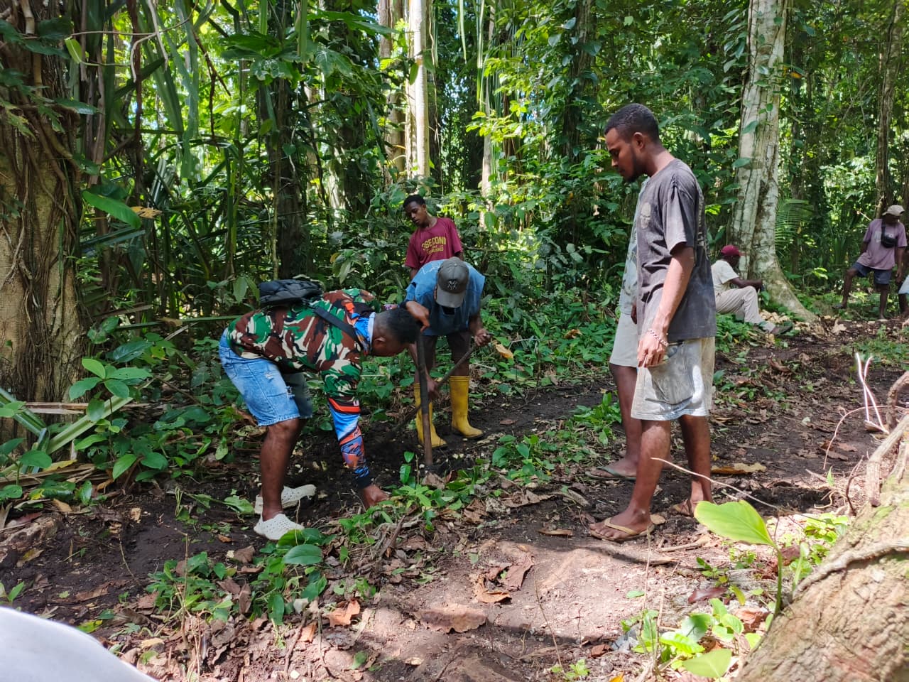 Untuk mendukung proyek pembangunan jalan dalam program TMMD ke-128, Satgas Kodim 1801/Manokwari berkolaborasi dengan penduduk lokal dalam kegiatan pembersihan dan perataan jalan di Kampung Tanah Rubuh, Distrik Manokwari Utara. Aktivitas ini merupakan langkah awal yang penting sebelum pengecoran dilakukan.