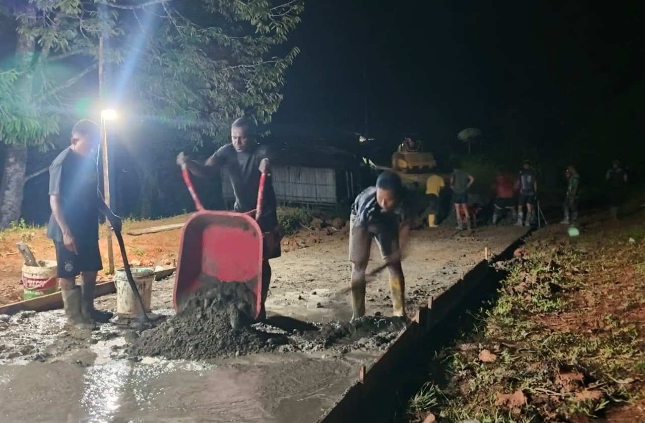 Pada Rabu malam (29/10/2025), prajurit terlihat bekerja dalam sistem shift malam untuk memastikan setiap tahap pembangunan berjalan sesuai jadwal. Beberapa di antaranya melakukan pengecoran jalan, sementara yang lain melanjutkan penyelesaian RTLH. Walau diterpa dinginnya udara malam, kerja keras mereka tetap terjaga.