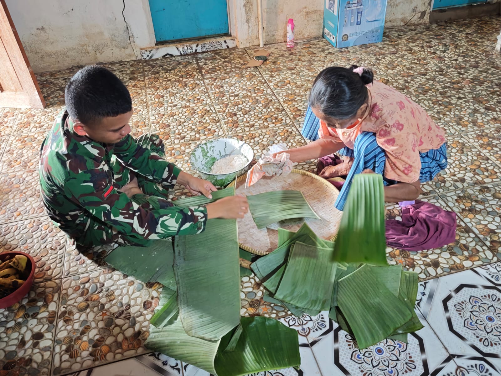 Banyuasin – Di tengah tugas jaga kamar, anggota Satgas TMMD Ke-127 TA 2026 dari Kodim 0430/Banyuasin, Sultan Rizki, berkesempatan untuk melakukan komunikasi sosial dengan masyarakat. Kegiatan ini berlangsung di Jalur 10 Desa Wonosari, Kecamatan Pulau Rimau, Kabupaten Banyuasin, di mana ia terlibat langsung dalam proses pembuatan kerupuk gendar bersama warga bernama Sonem.