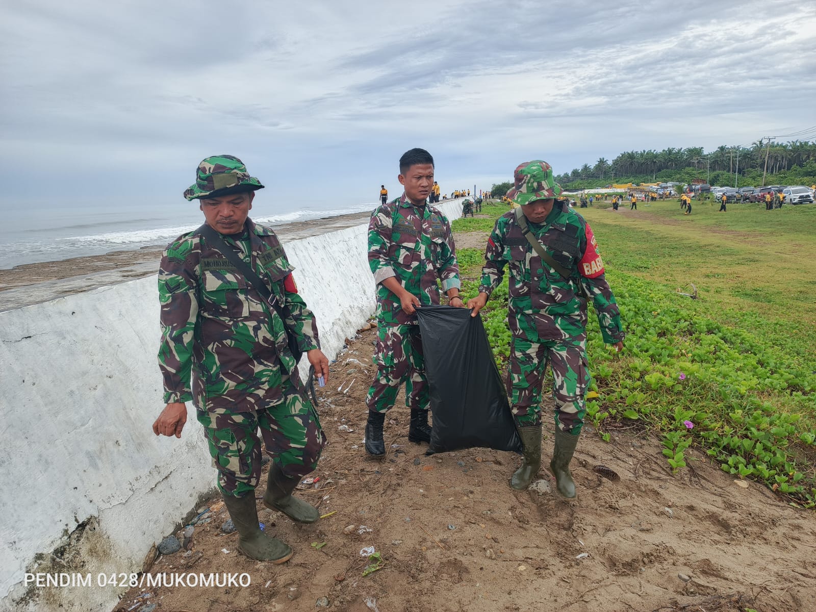 Kodim 0428/Mukomuko Gelar Aksi Bersih Pantai Abrasi untuk Pelestarian Lingkungan