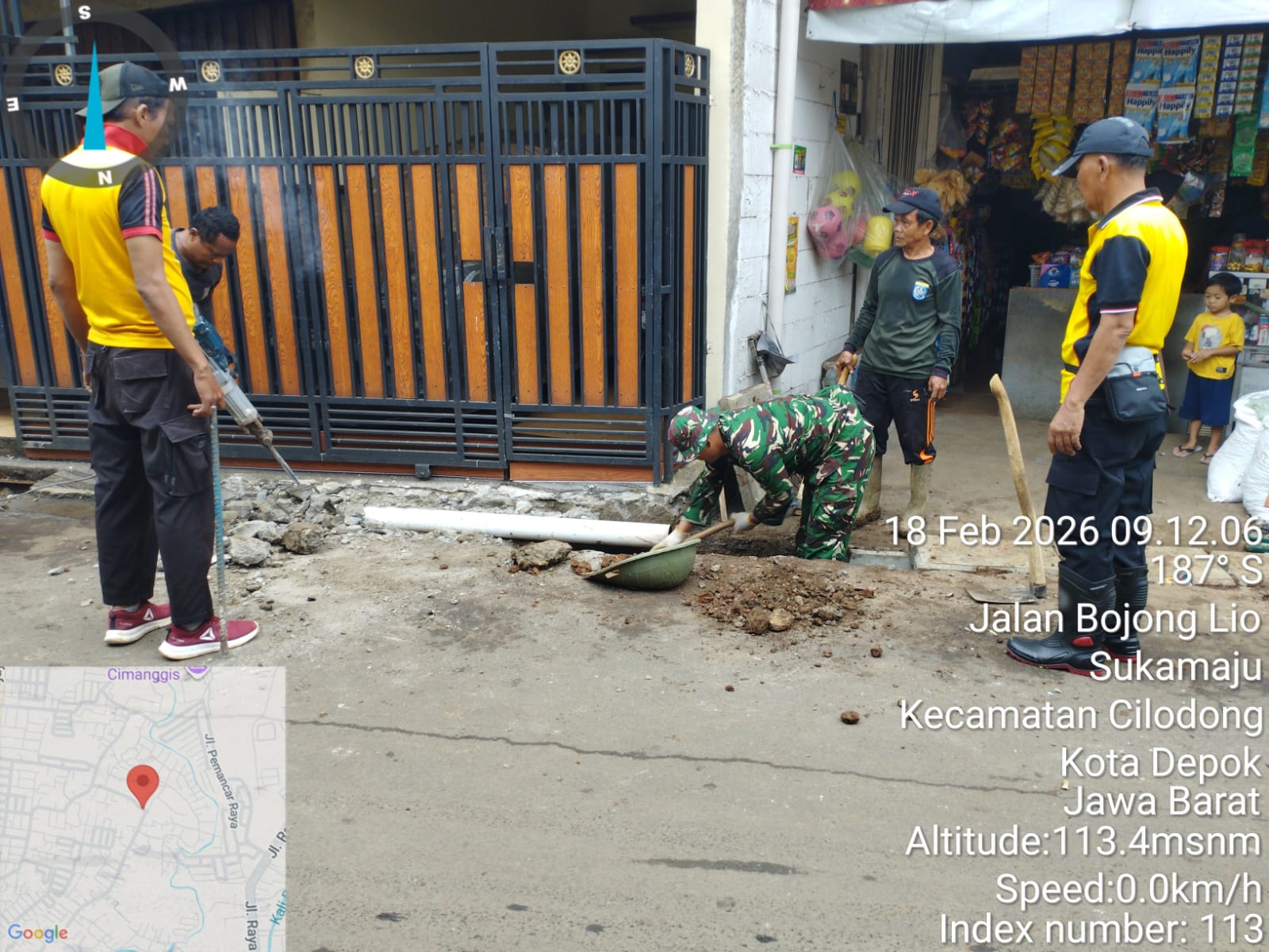 Depok – Dalam rangka pelaksanaan TMMD Ke-127 TA 2026, Kodim 0508/Depok terus mengintensifkan pembangunan drainase di Jalan Bojong Lio RT 03/28, Kelurahan Sukamaju, Kecamatan Cilodong, Kota Depok, pada H+8 pelaksanaan, Rabu (18/2). Saluran air yang dibangun sepanjang 200 meter menggunakan U-Ditch berukuran 30 x 40 cm kini telah mencapai progres sebesar 35,90 persen.