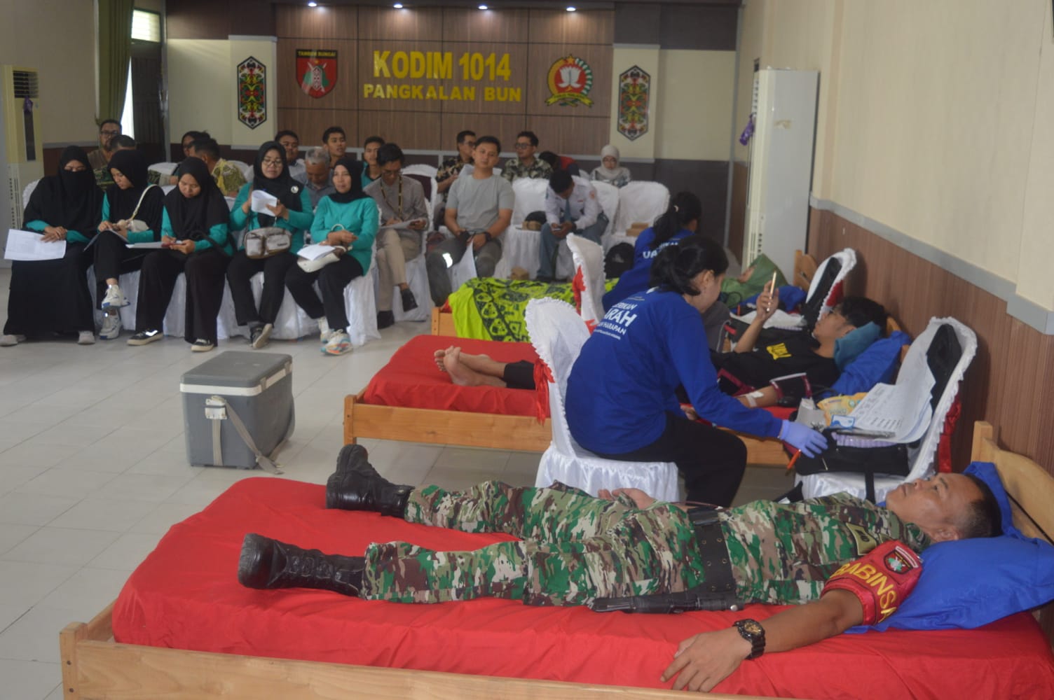 Kotawaringin Barat – Dalam rangka memperingati Hari Ulang Tahun ke-80 Persit Kartika Chandra Kirana (KCK), anggota Kodim 1014/Pangkalan Bun (Pbn) berperan aktif dalam kegiatan bakti sosial donor darah. Kegiatan ini berlangsung pada Selasa, 30 Januari 2026, mulai pukul 07.45 WIB di Aula Pandawa Sakti Kodim 1014/Pbn, Jalan P. Antasari, Kelurahan Raja, Kecamatan Arut Selatan, Kabupaten Kotawaringin Barat.
