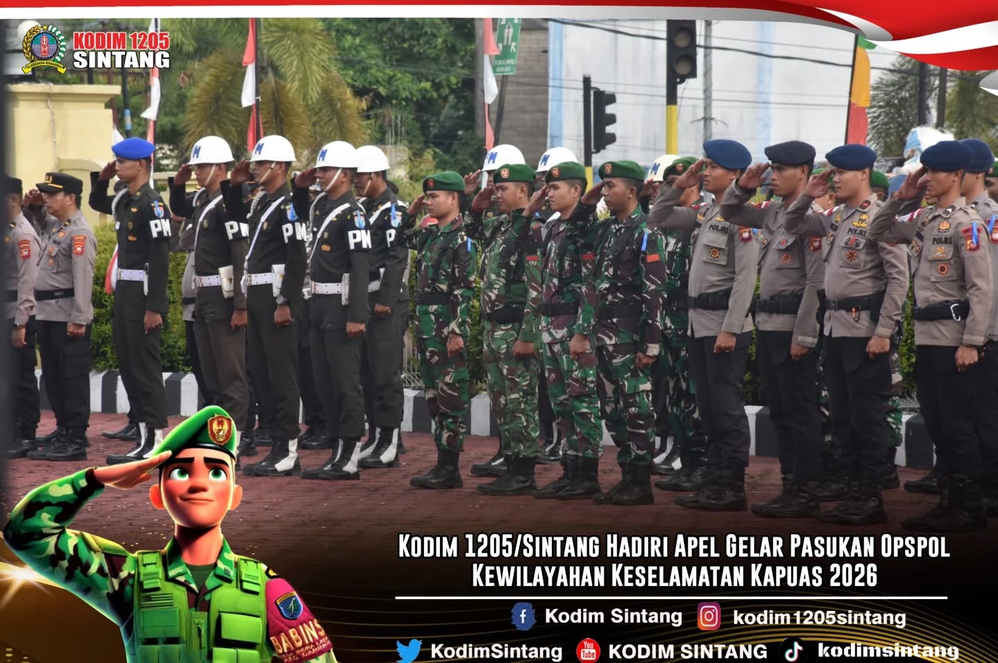 Sintang – Pada Senin, 2 Februari 2026, Kodim 1205/Sintang turut serta dalam Apel Gelar Pasukan Operasi Kepolisian (Opspol) Kewilayahan ‘Keselamatan Kapuas 2026’ yang berlangsung di halaman Mapolres Sintang, yang terletak di Jalan Bhayangkara, Desa Baning Kota, Kecamatan Sintang, Kabupaten Sintang. Dalam acara ini, Kodim 1205/Sintang diwakili oleh Pasi Ops Kapten Inf Ferry Rajagukguk, dan acara dipimpin oleh Wakapolres Sintang, Kompol Wawan Darmawan, S.I.K. Selain TNI, apel tersebut juga dihadiri oleh unsur Polri, Satpol PP, Dishub, Bappeda, Denpom, Brimob, Pengadilan Negeri Sintang, serta berbagai instansi terkait lainnya.