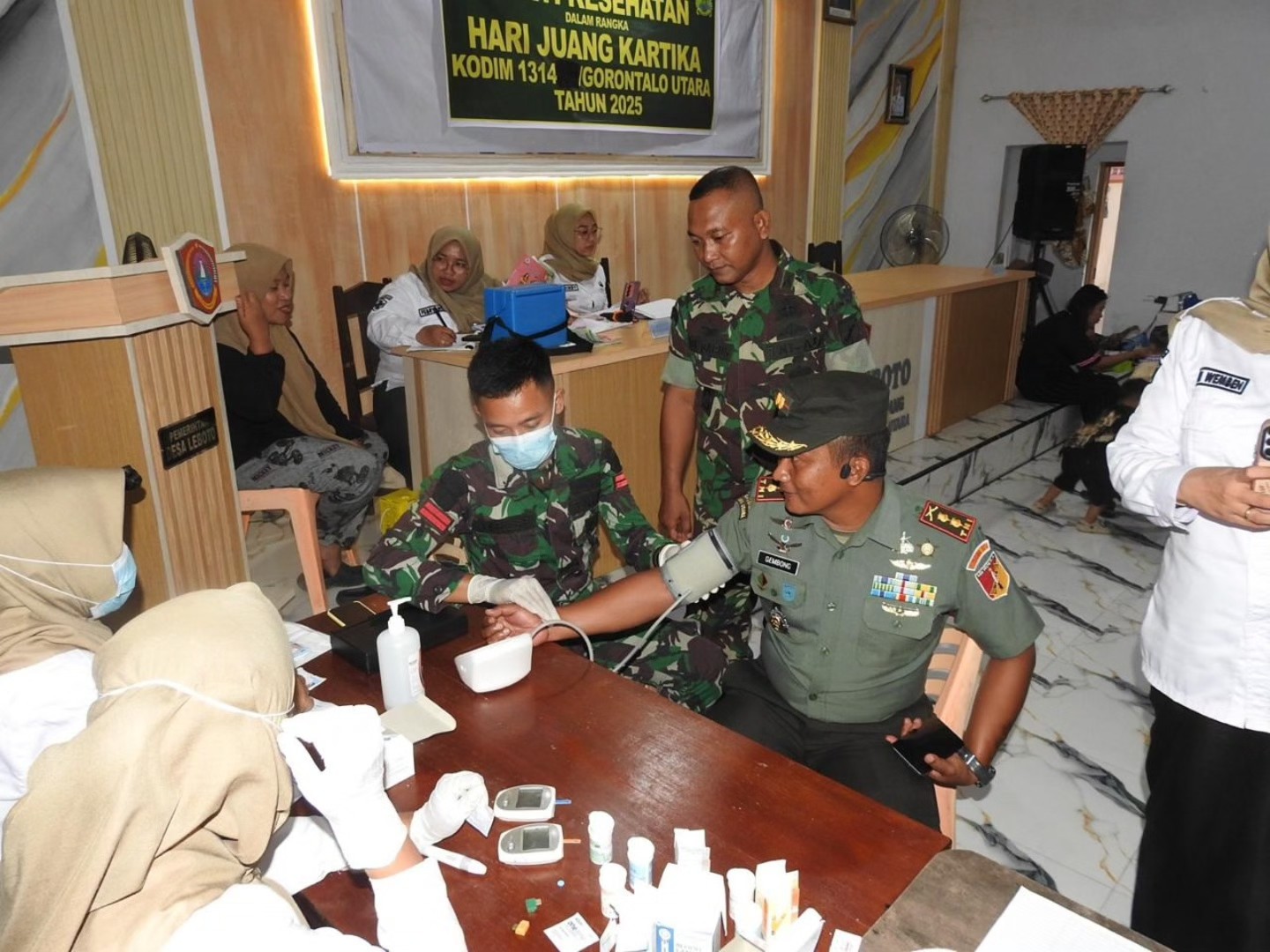 Dalam rangka memperingati Hari Juang TNI Angkatan Darat tahun 2025, Kodim 1314/Gorontalo Utara menggelar kegiatan Bakti Kesehatan (Baktikes) yang berlangsung di Kantor Desa Leboto, Kecamatan Kwandang, Kabupaten Gorontalo Utara pada Rabu, 10 Desember 2025. Kegiatan ini dihadiri oleh berbagai elemen masyarakat serta pejabat setempat, menunjukkan komitmen TNI AD untuk lebih mendekatkan diri dengan rakyat.