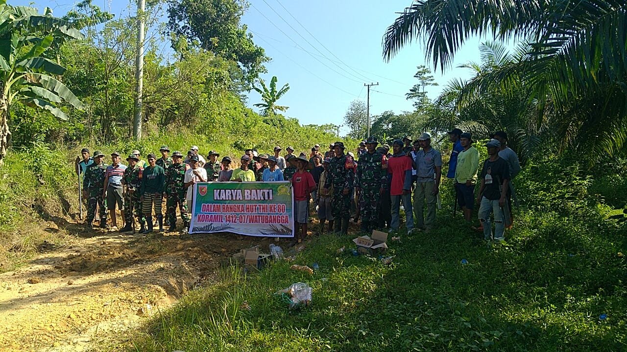 Kolaka – Dalam rangka memperingati Hari Ulang Tahun (HUT) ke-80 Tentara Nasional Indonesia (TNI), Kodim 1412/Kolaka bersama masyarakat melaksanakan kegiatan karya bakti pembersihan jalan di Desa Pondowae, Kecamatan Polinggona, Kabupaten Kolaka, Minggu (21/09/2025).