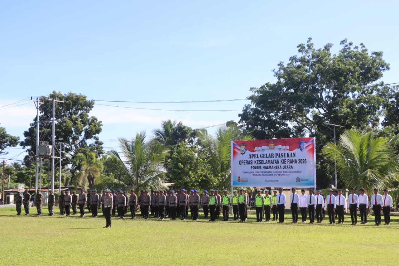 Halmahera Utara – Pada hari Senin, 2 Februari 2026, Kodim 1508/Tobelo turut berpartisipasi dalam Apel Gelar Pasukan Operasi Keselamatan Kie Raha 2026 yang digelar oleh Polres Halmahera Utara. Acara tersebut berlangsung di Lapangan Upacara Mapolres Halut, yang terletak di Desa Gosoma, Kecamatan Tobelo. Apel ini dipimpin oleh Wakapolres Halmahera Utara, Kompol Saiful Egal, S.A.P., M.A.P., dan dihadiri oleh berbagai unsur dari TNI, Polri, serta instansi terkait lainnya.