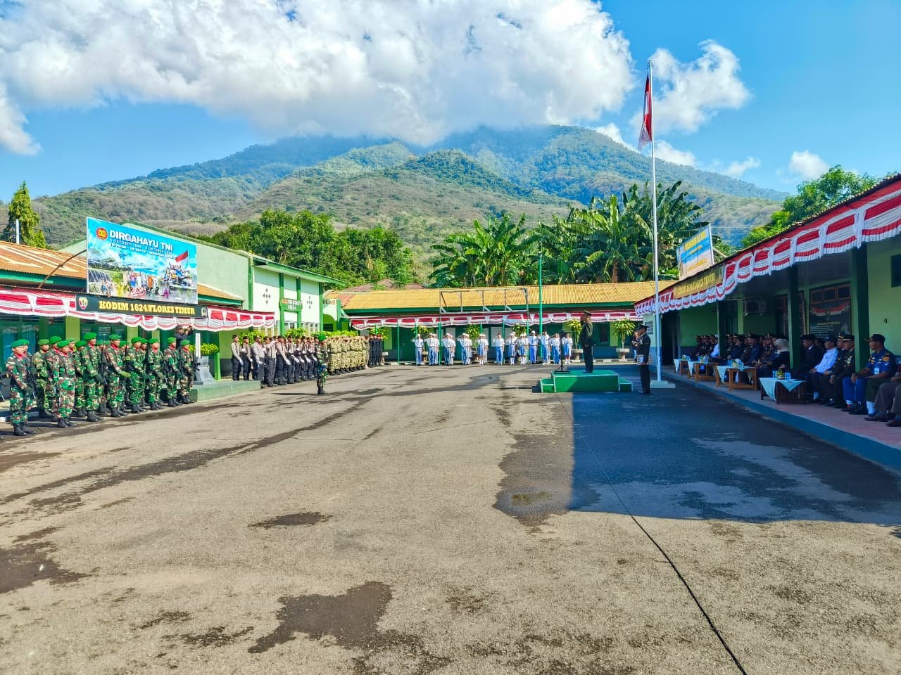 Bertindak sebagai Inspektur Upacara yakni Pabung Kodim 1624/Flotim, Mayor CZI Sunoko, sementara Komandan Upacara dijabat oleh Pasi Ops Letda Inf Abdul Gafur P. dan Perwira Upacara oleh Pasi Pers Letda Inf Stanislaus S. Koten.