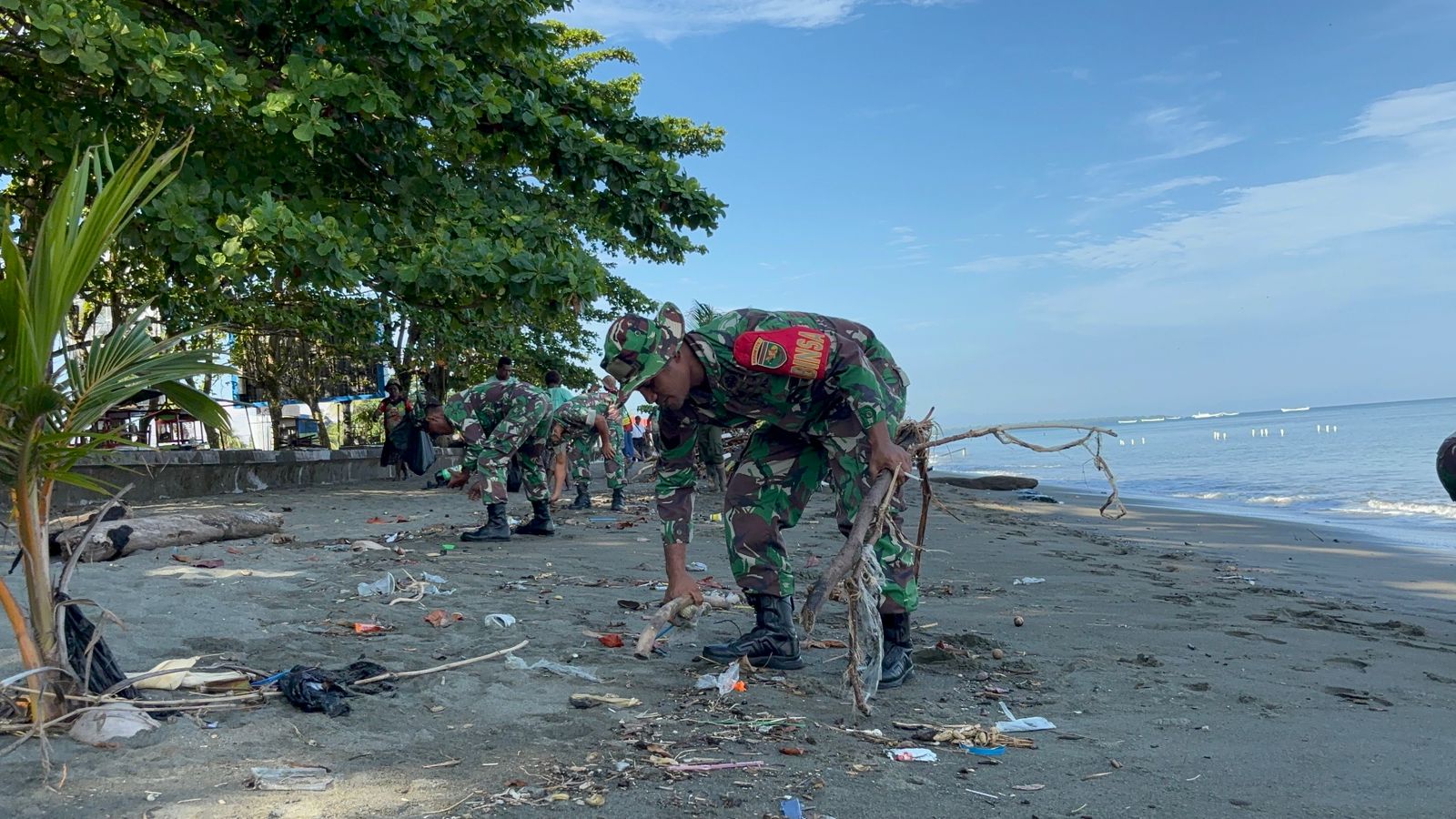 Kodim 1705/Nabire Laksanakan Pembersihan Pantai Sesuai Arahan Presiden RI