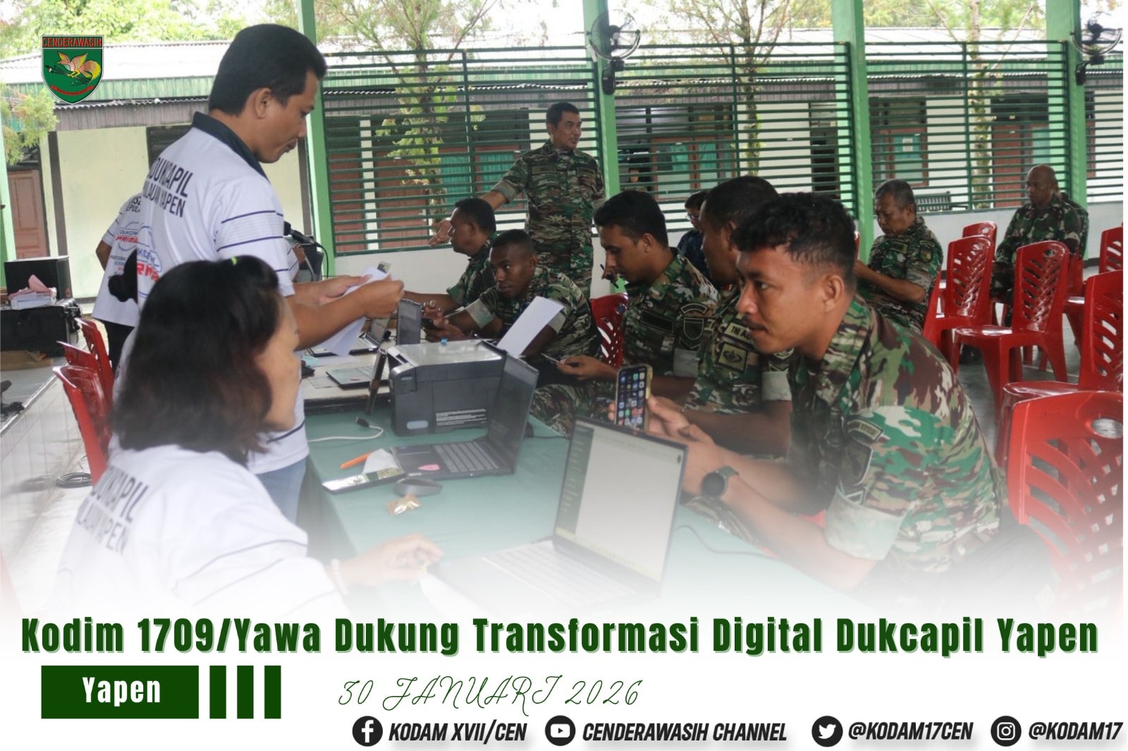 Kepulauan Yapen – Dalam upaya mendukung transformasi digital yang digagas oleh pemerintah, Kodim 1709/Yawa menunjukkan komitmen kuat dengan turut berpartisipasi dalam sosialisasi Pendaftaran Data Kependudukan Digital. Acara ini berlangsung pada hari Jumat, 30 Januari 2026, di Aula Jenderal Sudirman, Kodim 1709/Yawa yang terletak di Jalan Maluku, Distrik Anotaurei, Kabupaten Kepulauan Yapen.