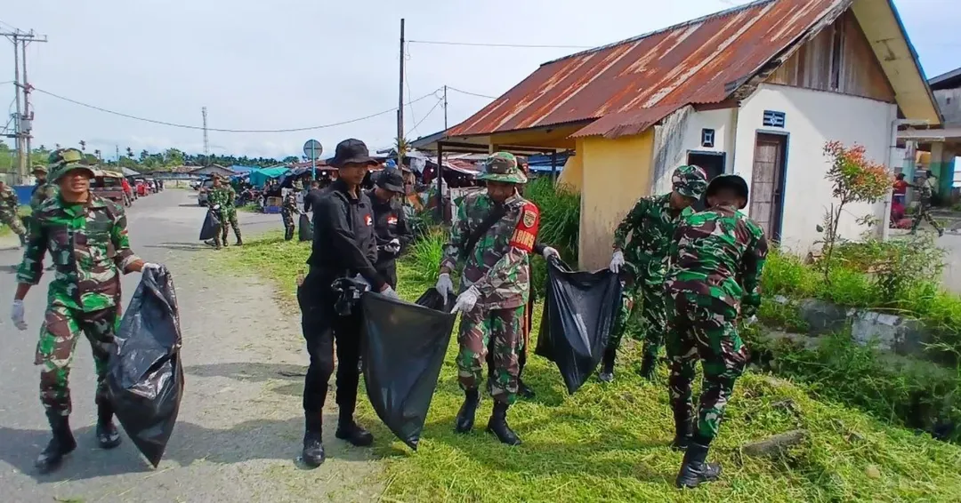 Kodim 1710/Mimika Bersihkan Pasar Sentral Menyambut Bulan Kasih Natal 2025