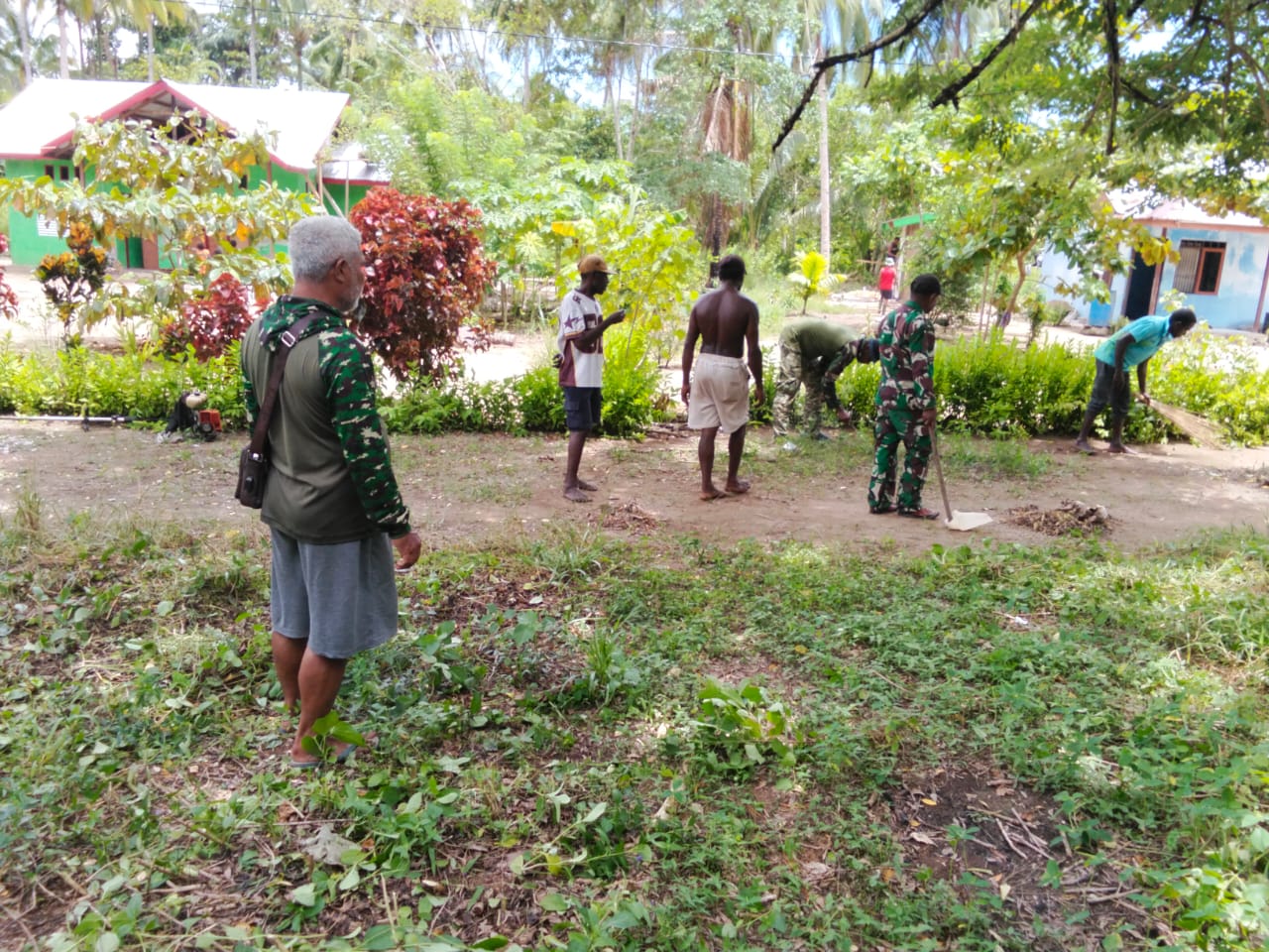 Kodim 1804/Kaimana Laksanakan Gotong Royong Bersihkan Jalan di Kampung Sisir 3 dalam TMMD 127