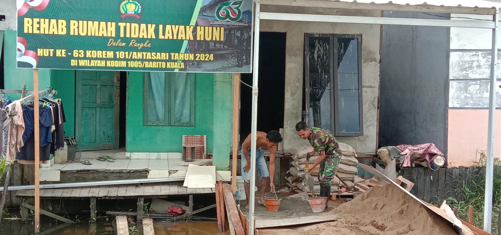 “Bedah rumah ini kami gelar dalam rangka memperingati HUT ke-63 Korem 101/Antasari sekaligus sebagai bentuk kepedulian khusus bagi Warga masyarakat yang kurang mampu,” Ujar Pasiter.
