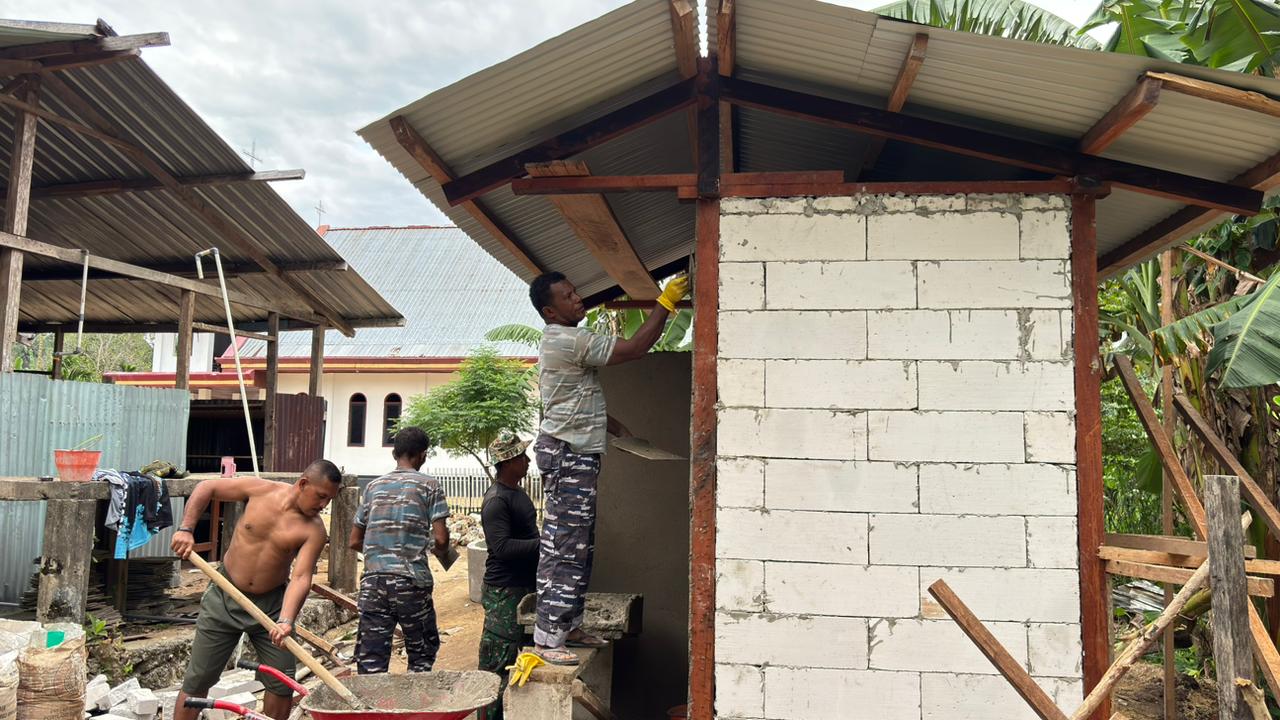 Kolaborasi Kodim 1804/Kaimana dan Lanal Kaimana Tingkatkan Pembangunan MCK TMMD 127 dengan Progres 53 Persen