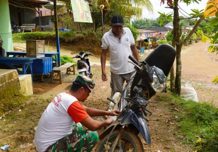 Kotawaringin Timur – Kegiatan gotong royong antara Satgas TMMD ke-127 Kodim 1015/Sampit dan masyarakat kembali tampak jelas dalam proses penyelesaian pembangunan jembatan yang berlangsung di Kabupaten Kotawaringin Timur pada Senin (09/03/2026). Pada tahap akhir pembangunan, personel Satgas berkolaborasi dengan warga untuk melakukan pengecatan struktur jembatan, sebagai upaya untuk mempercepat penyelesaian proyek tersebut.