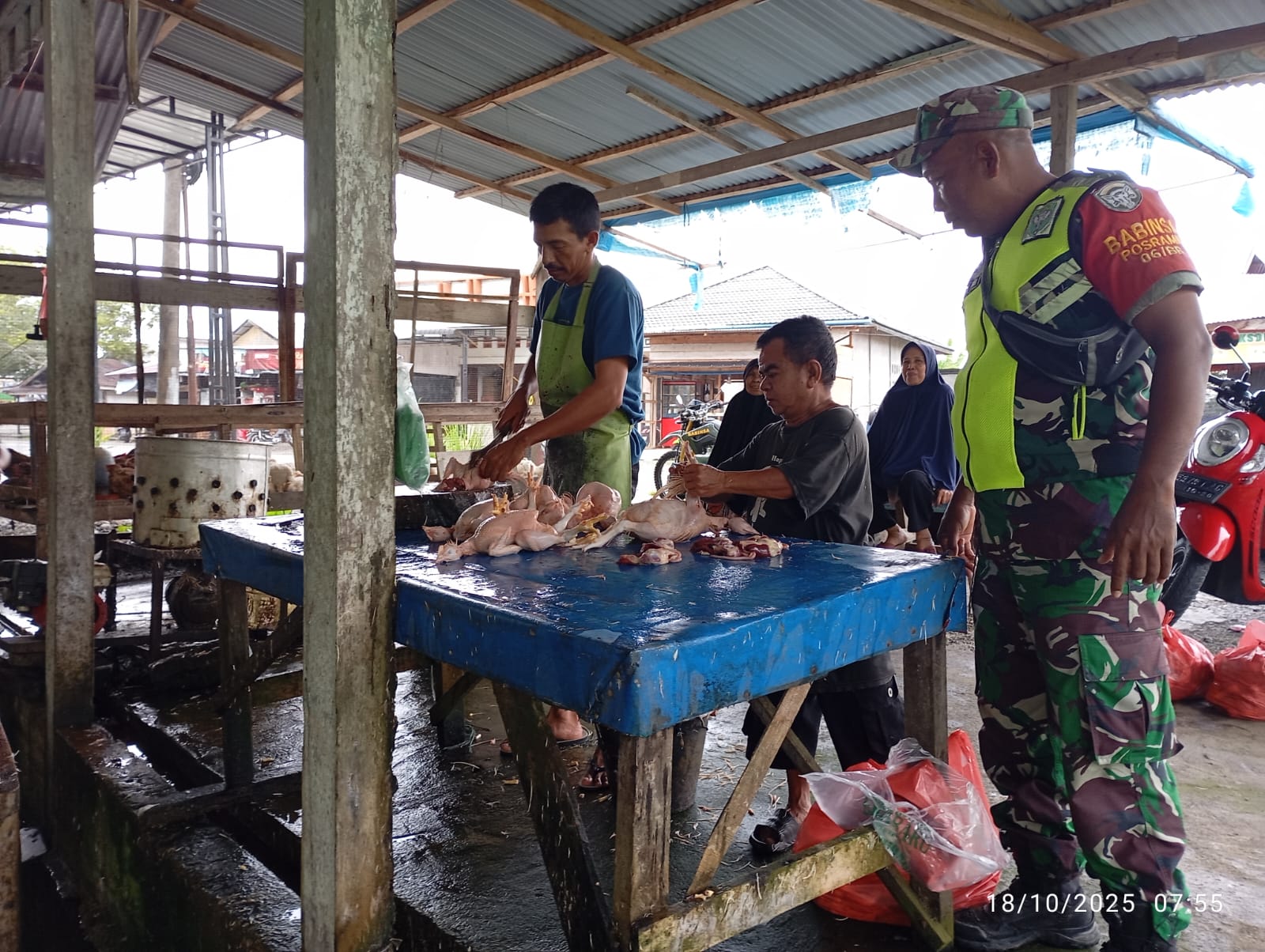 “Kali ini saya melaksanakan Komsos sambil bersilaturahmi dengan pedagang ayam potong, sekaligus mengimbau mereka agar menjaga kebersihan lingkungan dan menjual ayam yang sehat serta berkualitas. Kami juga mengingatkan agar harga tetap stabil sesuai ketentuan, sehingga masyarakat tetap dapat membeli dengan nyaman,” ujar Serka Samsul.