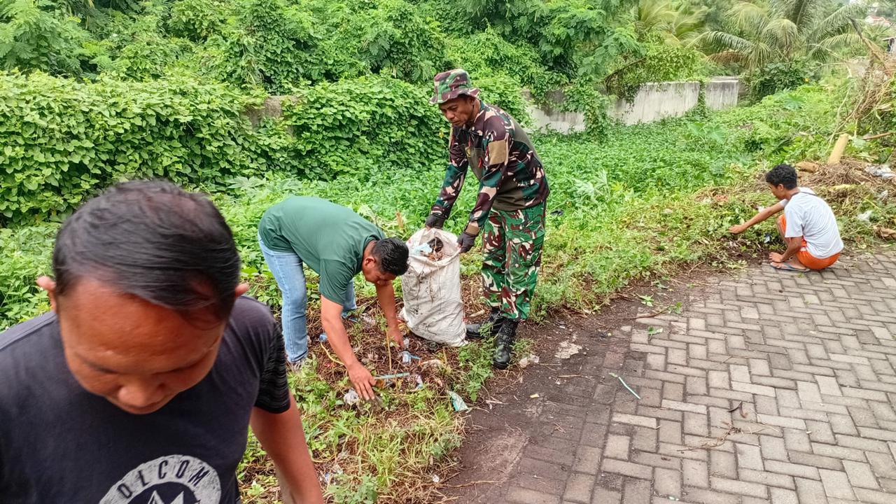 BITUNG – Dalam upaya menjaga kebersihan lingkungan dan mencegah penyebaran penyakit, Komando Ramil 1310-01/Bitung melakukan kegiatan karya bakti pembersihan selokan serta area kiri dan kanan jalan di Lingkungan 03 RT 10, Kelurahan Pateten Satu, Kecamatan Aertembaga, Kota Bitung. Kegiatan ini dilaksanakan pada Kamis, 12 Februari 2026, sebagai bentuk kepedulian terhadap lingkungan serta implementasi instruksi Presiden Republik Indonesia melalui program Gerakan Indonesia Asri.