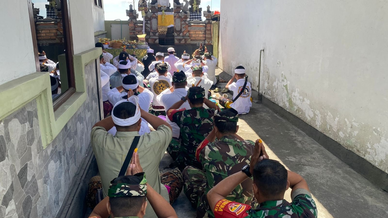 Upacara sakral ini dipuput oleh Jro Mangku Serka Nyoman Suarsa yang juga merupakan personel Koramil 1626-04/Kintamani. Seluruh anggota Koramil bersama keluarga besar TNI dan masyarakat sekitar turut hadir dalam rangkaian persembahyangan bersama untuk memohon keselamatan, kelancaran tugas, serta keharmonisan dalam pengabdian kepada bangsa dan negara.