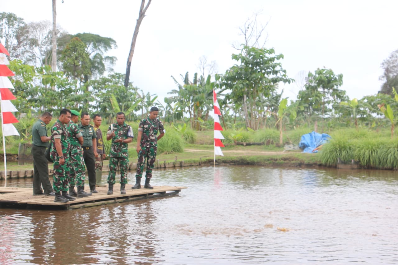 Tak hanya berdiskusi, Danyonif TP 856 juga berkesempatan berkeliling melihat hasil perkebunan, peternakan, dan perikanan yang ada di lahan Hanpangan Korem 012/TU.